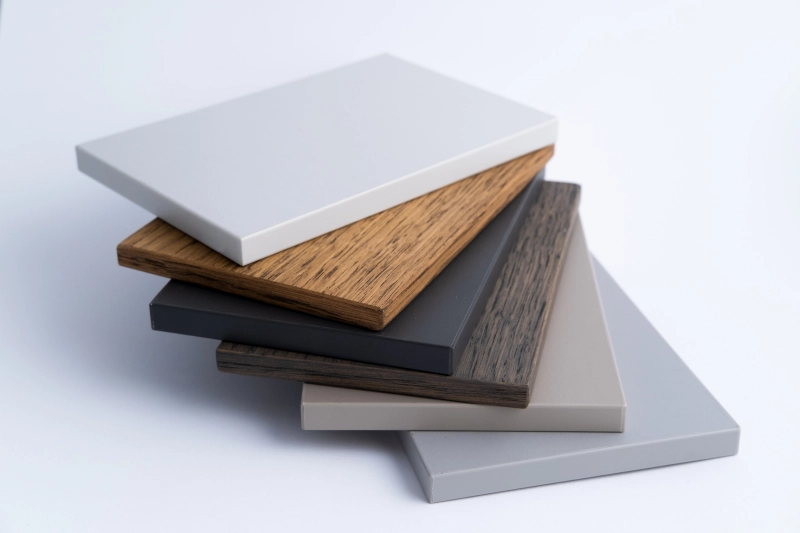 Praktilise hoiustamisruumi loomisel on võimalik kombineerida mitmesuguseid materjale, sealhulgas melamiini, spooni, värvitud MDF-i, klaasi ja peeglit.